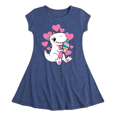 Girls' - Instant Message - Ice Cream Dinosaur Fit & Flair Cap Sleeve Graphic Dress