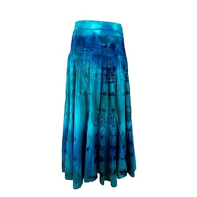 Agan Traders Women's Boho Summer Tie-dye High Waistband A Line Flared Maxi Skirt