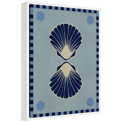 Kate and Laurel Lush Duo 3 Seashells Framed Canvas by Shatha Al Dafai, 18x24, White
