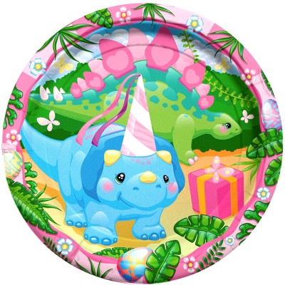 Treasures Gifted Girl Dinosaur Plates 9in - Girl Dinosaur Party Supplies - 24 Pack