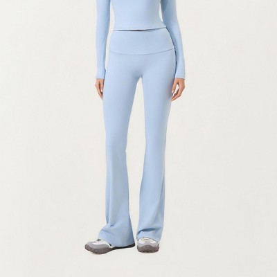 Anna-Kaci Active Women's Foldover Waist Flare Leg Yoga Pants in Ribbed Knit