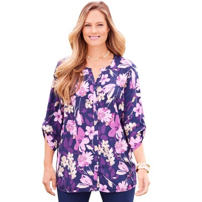 Roaman's Faux Wrap Tie Bi-Stretch Blouse