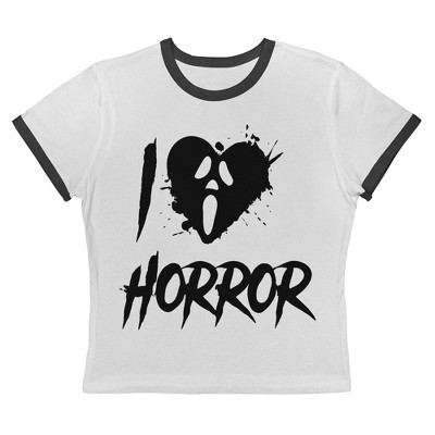 Rerun Island Women I Love Horror Face Black Short Sleeve Graphic Cotton Retro Vintage Ranger Baby Tee
