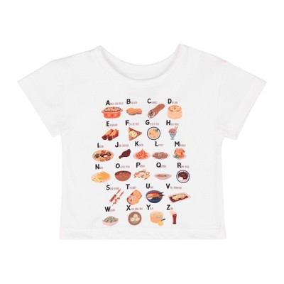 Rerun Island Women's Trouble White Txt Short Sleeve Graphic Cotton Baby Tee - Caviar L
