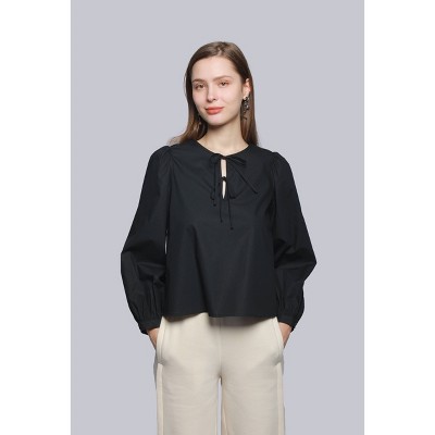 Women's Puff Long Sleeve Banded Collar Neck Blouse - Universal Thread™