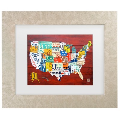 Trademark Fine Art Masters Fine Art USA License Plate Map on Metal Matted Framed Art