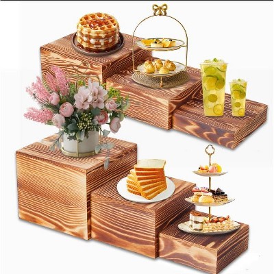 Mikasa Gourmet Basics 2-Tier Mango Wood Serving Tray, Hexagonal Shape - Double Layer Countertop Item Stand - Portable & Space-Saving