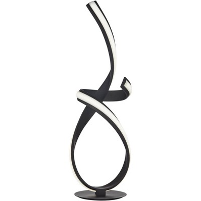 Possini Euro Avante Curl 23 1/2" High Small Modern Accent Table Lamp LED Black Metal Single White Shade Living Room Bedroom Bedside Nightstand House