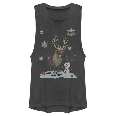 Juniors Womens Frozen Christmas Sweater Friends Festival Muscle Tee
