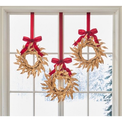 BrylaneHome Set Of 3 Cordless Pre-Lit Mini Christmas Wreaths