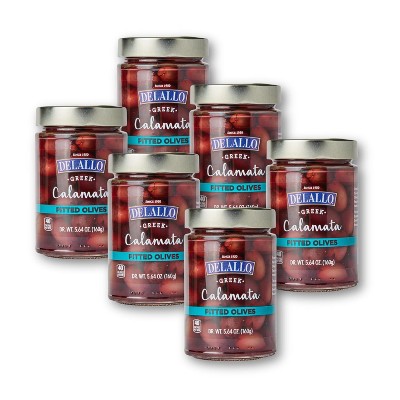 DeLallo Pitted Greek Kalamata Whole Olives, 5.64 oz Jar, (6-Pack)