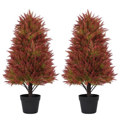 poetree 2.5ft Artificial Cedar Topiary,Faux Tree in Pot,2 Pack,Fall decor for Indoor/Outdoor