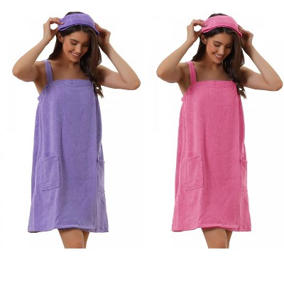 INSPIRE CHIC Women's 2 Pcs Sleeveless Towel Wrap Robe with Strap for Shower