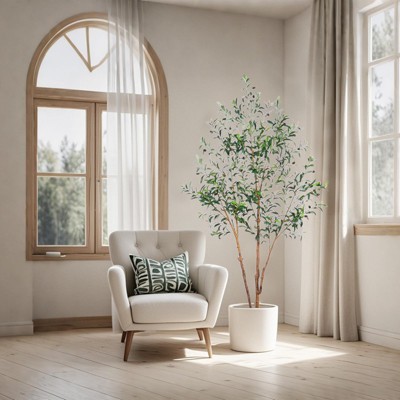 Acekool Artificial Eucalyptus Tree, Faux Olive Tree Indoor with White Pot, Slender Leaves, Home Office Living Room Decor, Low Maintenance