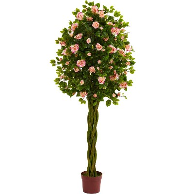 Nearly Natural 6-ft Rose Artificial Tree with Woven Trunk