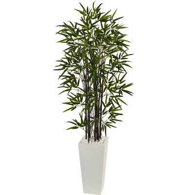 Nearly Natural 5.5-ft Black Bamboo Artificial Tree in White Tower Planter