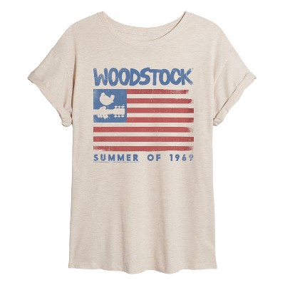 Women's Woodstock Fest USA Flag Oversized Graphic T-Shirt - Birch - Small