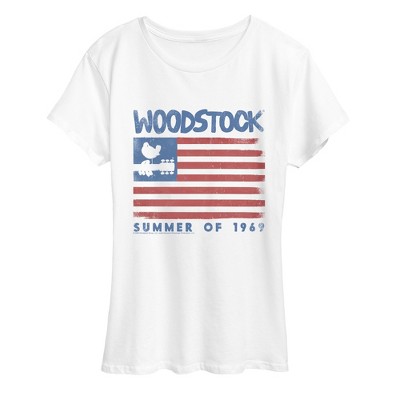 Women's Woodstock Fest USA Flag Short Sleeve Graphic T-Shirt - White - 4X