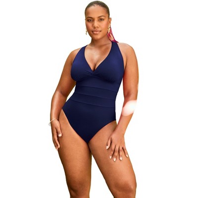 Swimsuits for All Twist-Front V-Neck One Piece Swimsuit (Plus Sizes Available)