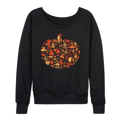 Women's - Star Wars - Fall Pumpkin Silhouette Lightweight French Terry Wide Neck Long Sleeve Graphic Shirt