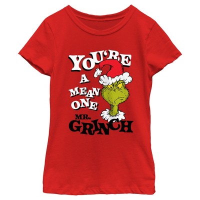 Girl's Dr. Seuss Christmas Grinch You're a Mean One Portrait T-Shirt