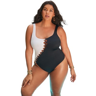 Swimsuits for All Shimmer High Neck Cut Out Ring One Piece Swimsuit (Plus Sizes Available)