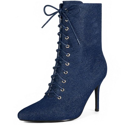 Perphy Women's Pointy Toe Side Zip Lace Up Stiletto Heels Ankle Booties
