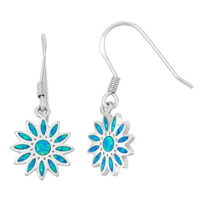Opalata Sterling Silver Blue Inlay Opal Daisy Dangling Earrings - Blue