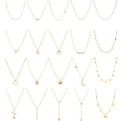 20PCS 14K Gold Choker Set – Layered Coin, Pearl & CZ Pendant Necklaces for Women & Teens