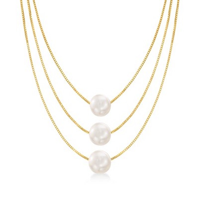 Ross-Simons 9-9.5mm Cultured Pearl 3-Strand Layered Necklace in 18kt Gold Over Sterling