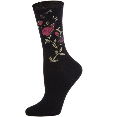 Memoi Metallic Floral Cotton Blend Crew Sock