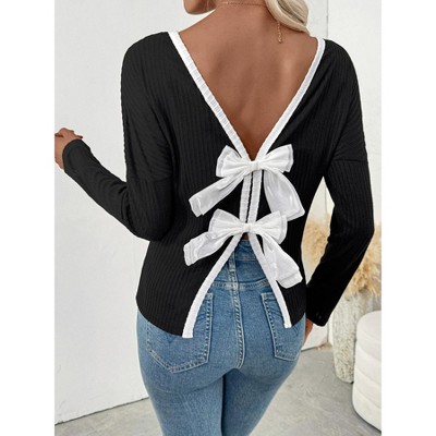 RuffleButts Baby Girl Waffle Knit Long Sleeve Bow Back Top