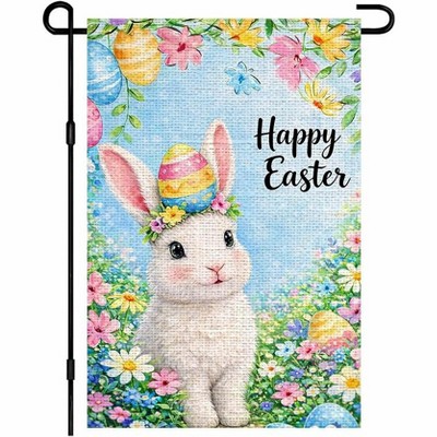 Lomsoe Happy Easter Garden Flag Easter Rabbit Egg Hat Floral Yard Sign Spring Easter Sign Seasonal Outdoor Decor Easter Gift 12x18Inch