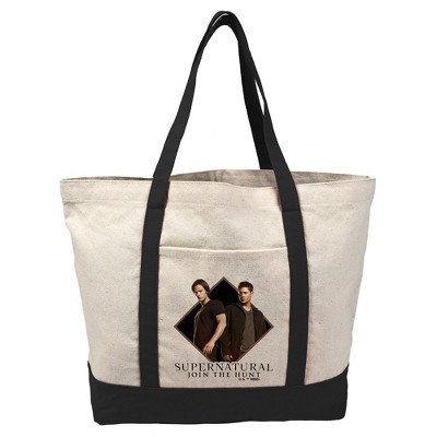 Supernatural Brothers Canvas Tote Bag With External Pocket, Reusable Shoulder Bag for Shopping, School, Beach, Black