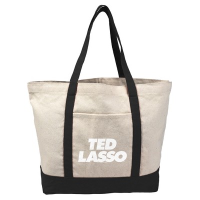 Ted Lasso Logo Canvas Tote Bag With External Pocket, Reusable Shoulder Bag for Shopping, School, Beach, Black