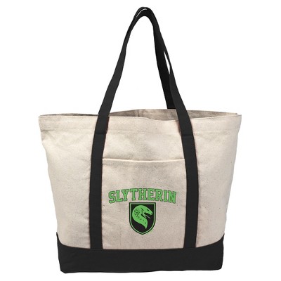 Harry Potter Slytherin Arch Canvas Tote Bag With External Pocket, Reusable Shoulder Bag for Shopping, School, Beach, Black