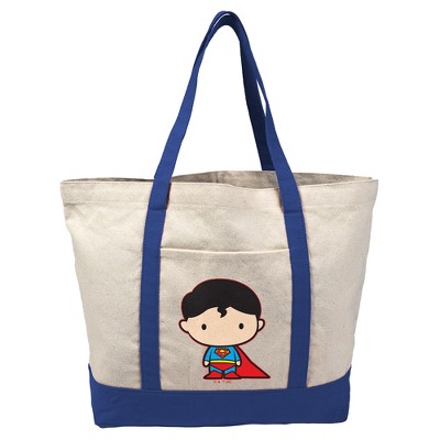 Superman Cute Chibi Character Canvas Tote Bag With External Pocket, Reusable Shoulder Bag for Shopping, School, Beach, Royal