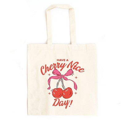City Creek Prints Cherry Coquette Bow Chart Canvas Tote Bag - 15x16 - Natural