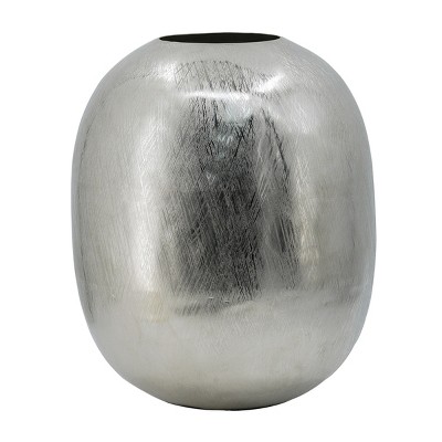 Gulches 12.5x12.5x15 Inch Silver Streak Aluminum Vase, Large Round Metallic Finish Decor Vase for Console Dining Table Mantel, 3.5 lbs