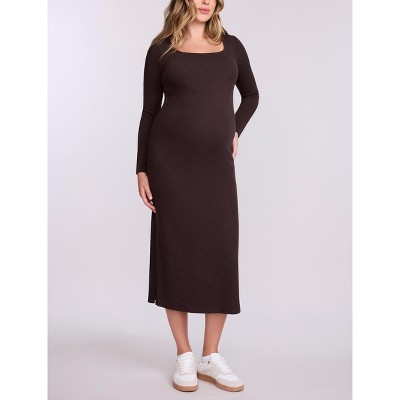 Women's Square Neck Rib Knit Long Sleeve Bodycon Maxi Dress | Motherhood Maternity