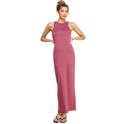 Slickblue Side Slit Maxi Dress, High Neck Sleeveless, Women’s Form-Flattering Style, Multiple Color Options, Size S-L