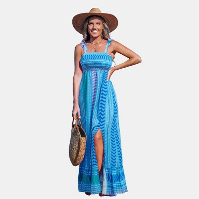 Women's Chevron Striped Self-Tie Strap Maxi Dress - Cupshe