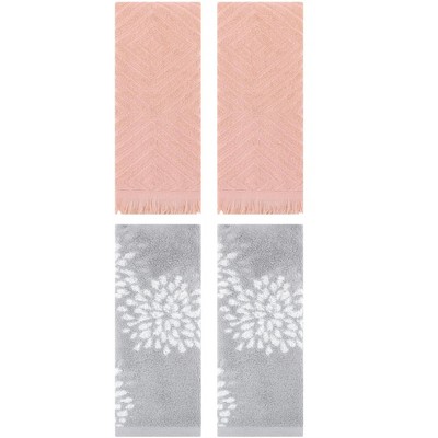REGALWOVEN 4 Pcs Bathroom Pure Cotton Absorbent Soft Decorative Hand Towel Set