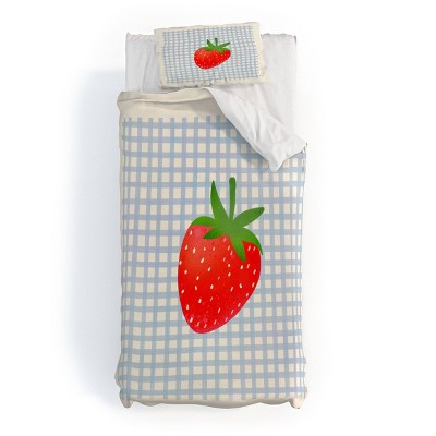 Deny Designs King Rosebud Studio Strawberry Sunshine Duvet Cover Bedding Set Blue