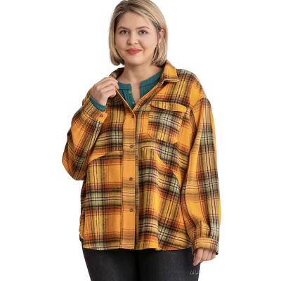 Slickblue Button Front Plaid Shacket With Pockets , Overshirt , Relaxed Fit , Brown Mix , XL