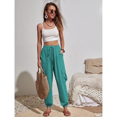 Cargo Jogger Parachute Pants For Women Casual Baggy Low Waist Drawstring Light Y2K Pants