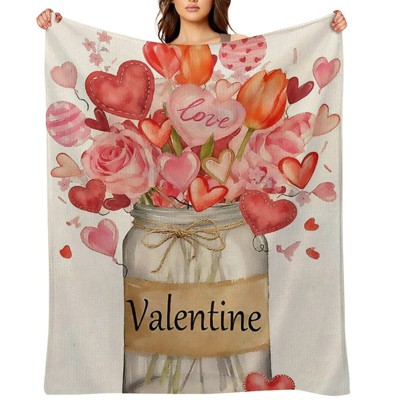 Valentine's Day Watercolor Jar Floral Throw Blanket - Ultra Soft, Anti-Pilling for Bed & Gifts 40x50 inches