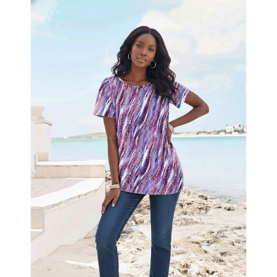 Woman Within Perfect Printed Short-Sleeve Boatneck Tunic