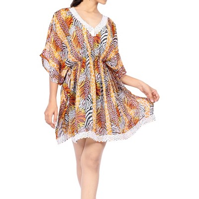 LA LEELA Women's Beachwear Loose Holiday Bathing suit Summer Short Fall Swimsuit Cover ups Tops X-Large-XX-Large Orange Animal Icon