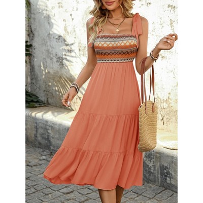 Allegra K Women's Boho Printed Summer Sleeveless V Neck Flowy Sundresses